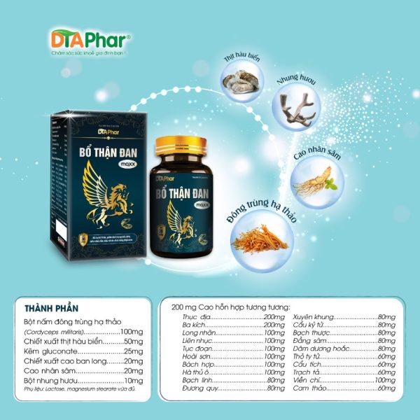 Hỗ trợ giúp: bổ thận, tráng dương, sinh tinh, mạnh gân cốt và tăng cường sức khoẻ sinh lý cho nam giới.